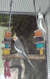 Als ich im Januar 2007 den Entschluss gefasst hatte, mir Nymphensittiche nach Hause zu holen, habe ich mich zuvor ausgiebig erkundigt auf was bei der Haltung zu achten ist. Nicht nur der Standort, und die Beschaffenheit der Voliere, sondern auch die Ernährung und die tägliche Abwechslung standen im Fokus. Das nur ein Pärchen in Frage kam, war somit von Beginn an klar. Mein Ziel war es, zu meinem Geburtstag Ende Februar, alles fertig zu haben, um mir an diesem Tag meinen großen Wunsch auch erfüllen zu können. Es wurde somit die Voliere in Auftrag gegeben und am Wochenende montiert, die Vogellampe wurde installiert, alle gefährlichen Kabel gesichert, giftige oder zweifelhafte Pflanzen ausgelagert, Schlitze verbaut, usw. Ich hatte es geschafft und konnte mir an besagtem Datum meine zwei Lieblinge in der Handlung abholen. Ich war überglücklich! Alles verlief so wie ich es mir ausgemalt hatte. Der Umzug ins neue Heim verlief ruhig und ohne Zwischenfälle.