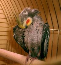 KojakKojak musste, wie alle meine Neulinge, zuerst in die Vogelklinik nach Oberschleißheim zum Gesundheitscheck. Es wurde ein Kropfabstrich gemacht, der Kot wurde untersucht und ein wenig Blut musste Kojak lassen. Das Ergebnis: Ein gesunder Vogel! Den Test auf PBFD, der schlimmen Feder- und Schnabelkrankheit, konnte ich mir lt. meiner Tierärztin sparen, da die Anzeichen dafür nicht gegeben sind. Seine Glatze stammt, nach den Vermutungen der Ärztin von einem oder mehreren anderen Vögeln –evtl. auch Nymphen- die Kojak gehakt und gerupft haben müssen. Bei genauem betrachten sind deutlich Hackspuren - „kleine Dellen“ auf Kojaks Köpfchen zu sehen. Ob Kojak jemals wieder eine schöne Haube haben wird, kann man nicht sagen, da keiner weiß wie stark die Federkiele bei diesen Attacken verletzt wurden. Zur Anregung des Stoffwechsels, bekommt er Catosal ins Trinkwasser, welches das Federwachstum anregen soll.