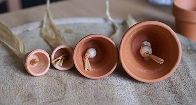 - Gefüllte Tontöpfe und Holzglocken
